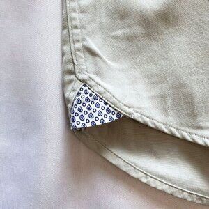 reversible cuff option Ted Baker seasonal design trim under front placket. Ted Baker details on side gusset - formal chic neutral classic formal / career / business shirt wearable all year long in a breathable cotton fabric.