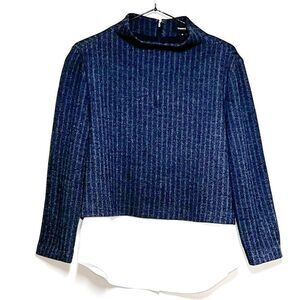 * Top layer is a navy pinstriped cropped soft cotton & wool blend with stretch and 3/4 sleeves