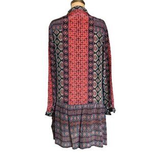 NWOT TOLANI Rory Mixed-Print with Embroidery Flounce-Hem Tunic Dress