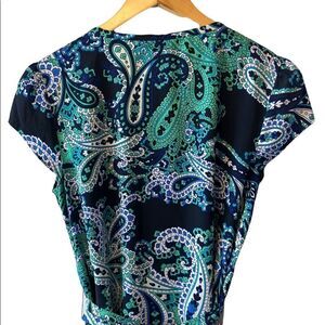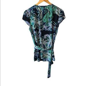 NWOT TOMMY HILFIGER Blue & Green Paisley Satin Cap Sleeve Wrap Top S
