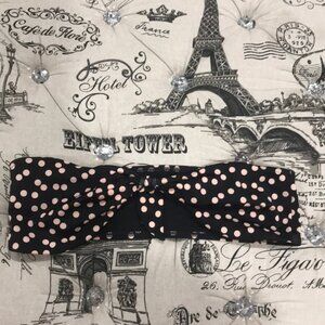 This itsy bitsy polka-dot bikini now comes in black and pink, completed by this tie-front bandeau halter top.