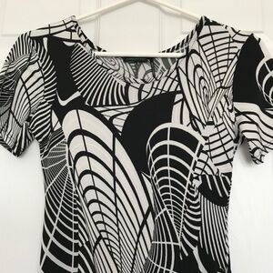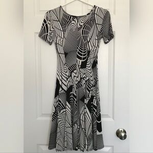 NWOT TRICOTTO Black White Abstract Midi Dress S/M Fit Short Sleeve Flare