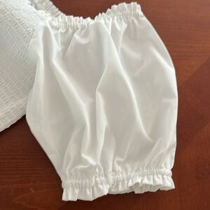 Flirty little Crisp White Milk Maid Midi Dress. Smocked bodice and puff sleeves. Skirt is fully lined.