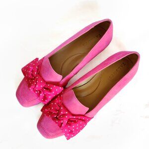 NWOT Talbots "Stella” Pink Suede Bow Polka Dot Loafers 5.5M