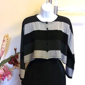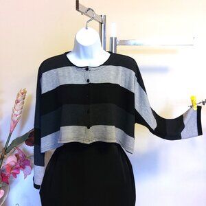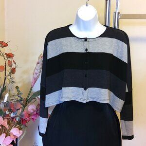NWOT Tara Vao Women’s Crew Neck Casual Work Gray Black Short Knit Sweater Batwing Sleeve Loose Top Size M could fit for 6 or 8
