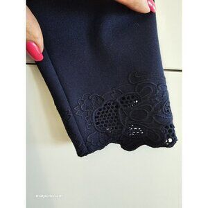 A versatile pleated dress featuring scalloped cutwork embroidery at the neckline, cuffs, and hem.