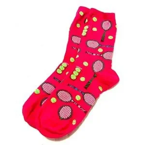 Add a sporty touch to your outfit with these vibrant red socks featuring a fun tennis racket pattern. Perfect for tennis enthusiasts.