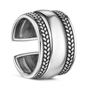 NWOT Thick Wide Band banded 925 Sterling Silver Stamp Open Cuff Ring Adjustable