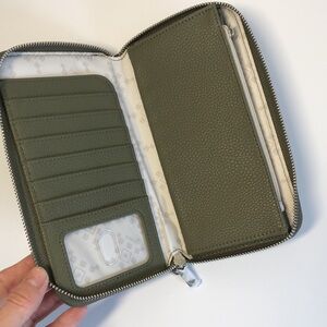 NWOT Thirty One Jewell Wallet Green Embroidered Floral Boho