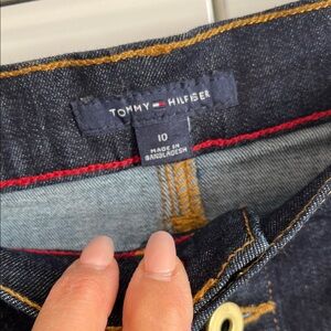 NWOT Tommy Hilfiger Dark Denim Skirt brushed gold Button Closure belt loops, Size 10