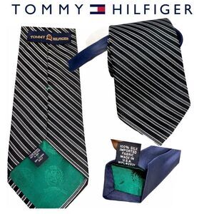 NWOT Tommy Hilfiger black striped 100% silk tie