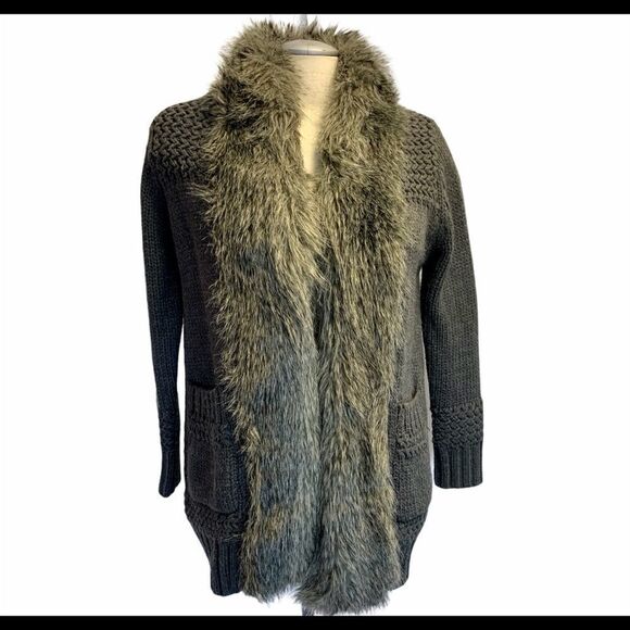 NWOT Topshop gray faux fur cardigan sweater size 2