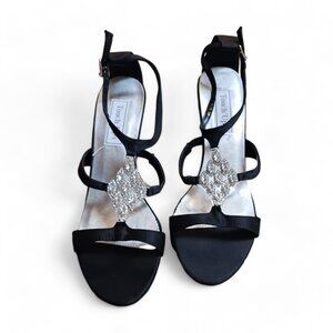 NWOT Touch Ups Black Satin Crystal Rhinestone Embellished Heels Size 9M