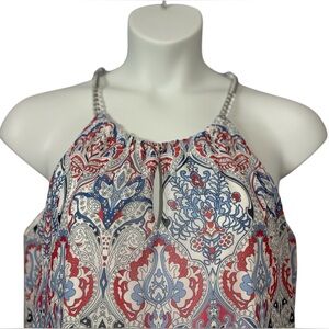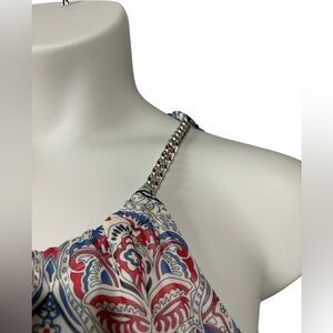 NWOT, Tribal Femme, Paisley Print Dress With Chain Straps, Large, Red, Blue