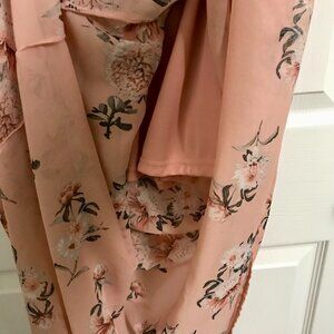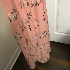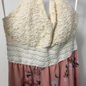 NWOT Two Tone Halter Neck Maxi Dress L Floral Pink White Cream Embroidery