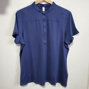 NWOT UNDER ARMOUR Performance Golf Polo Shirt Collarless SS Navy Blue Women's XL