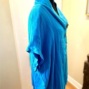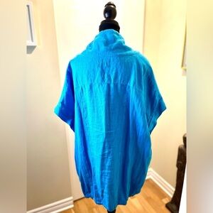 NWOT /UNO Linen ‘Dagfrid blouse’ aqua blue w/fpocket & buttons, draw string hem