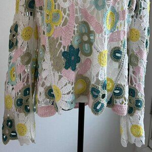 NWOT Ultra Pink Cotton Pastel Crochet Daisy Open-Knit Flare-Sleeve Top – US OS