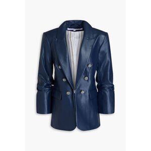 NWOT VERONICA BEARD Beacon Storm Blue Faux Leather Dickey Jacket Blazer, Size 2