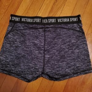 Victoria Secret Sport shorts, size Large. NWOT. Dark heathered grey / black / white. Excellent condition. Non smoking house.