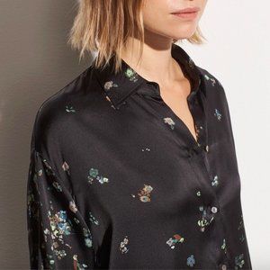 NWOT Vince Scattered Floral silk-satin long sleeve blouse XL