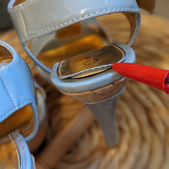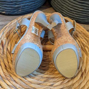 NWOT (W7) - ATMOSPHERE Grey Patent T-Strap Platform Sandal