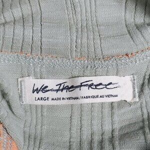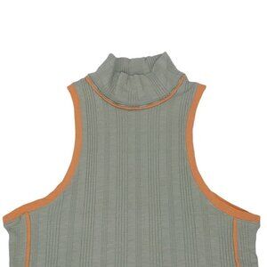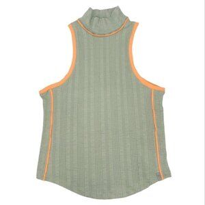 NWOT WE THE FREE/FREE PEOPLE Green, orange trims, ribbed, sleeveless, retro, turtle neck top, size large. Nice light and stretch ribbed knit fabric.