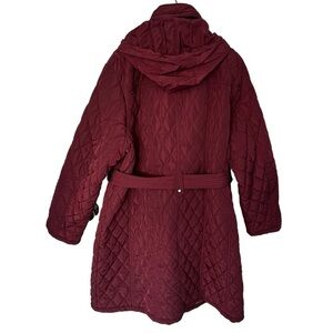 NWOT WOMENS MICHAEL KORS MAROON PUFFER COAT ZIP UP KNEE LENGTH W/ BELT & HOOD 1X