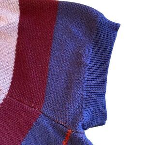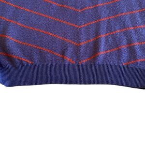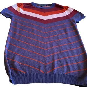 Lightweight summer sweater in classic chevron pattern. Purple with pink, red and blue highlights. Machine washable. Perfect with jeans.