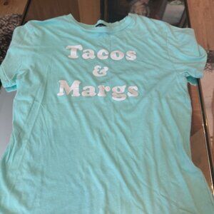 New Without Tags Wildfox Happy Hour Keke Tacos and Margs graphic short sleeve T-shirt in size XS. This super cute t-shirt is mint green, white letters, extra soft, factory distressed graphic tee. Bought it for my daughter and she never wore it.