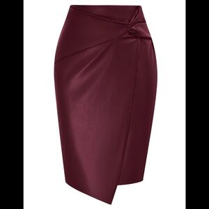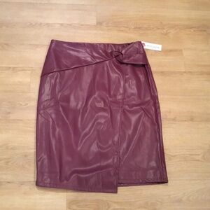 NWOT Women’s Faux Leather Knee Length Knot Front Wrapped Pencil Skirt
