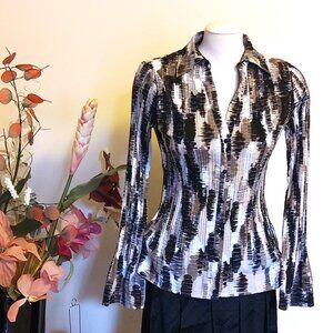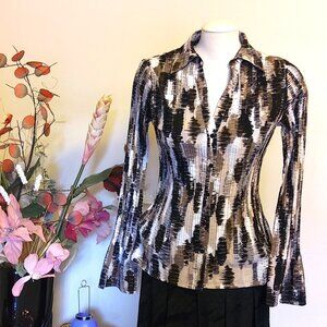 NWOT APT.9TM Women’s Long Sleeve Loose Shirts Multi Color Print Pleated Blouses Tops Office Work Size M fir for 8 or 10