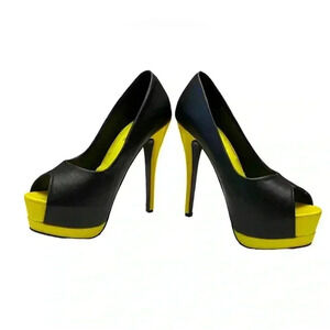 Elevate your dance performance with these striking, high-heeled pole dance shoes featuring a bold contrast of black uppers and vibrant yellow platforms and heels. Designed with a generous platform to ensure stability and comfort during dynamic moves, the shoes boast a sleek silhouette that elongates the legs for an empowering and confident display. 5 inch heel. New 🏷️ / 🚭 / 📦 carefully packaged and shipped quickly.