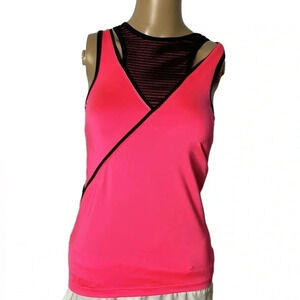 NWOT XS TAIL Sleeveless, bright pink and black trim,crochet overlay Tank top