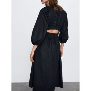 NWOT ZARA BLACK L/S BACK CUT OUT POPLIN DRESS, SIZE: XS