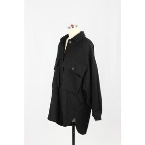 NWOT ZARA Black Serge Twill Oversized Batwing Sleeve Button Down Shirt, Size S
