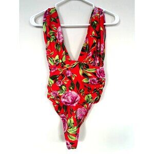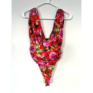 NWOT ZARA Bodysuit Size Small Orange Floral Draped Stretchy V-Neck Wide Straps
