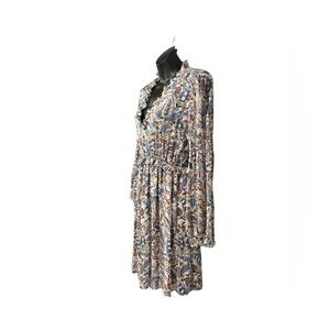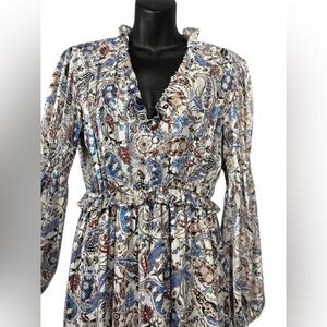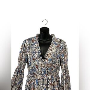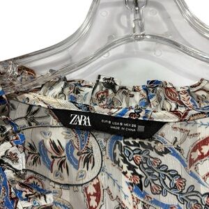 NWOT, ZARA, Dress With Print And Ruffles, Small, White, Blue, Tan