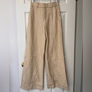 NWOT ZARA Ecru Wide Leg High Waist Vegan Leather Trouser Pant M