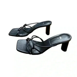 Elevate your ensemble with these sophisticated black high-heel sandals featuring slender straps that create a minimalist yet elegant look. The design is both timeless and versatile, with a sturdy block heel ensuring comfort and stability for any occasion. Heel height : 2 1/2 inches. New 🏷️ / 🚭