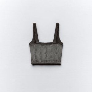 NWOT ZARA FADED-EFFECT BUSTIER TOP, DARK GRAY SIZE: SMALL