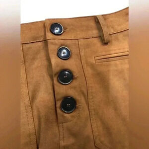 Exude retro charm with this faux suede mini skirt from Zara. The skirt features a flattering A-line cut, symmetrical decorative front pockets, and a row of buttons down the front for a vintage touch. Its rich, caramel color brings an earthy warmth to any ensemble, perfect for making a stylish statement. New 🏷️ / 🚭 / trf collection / ultra soft