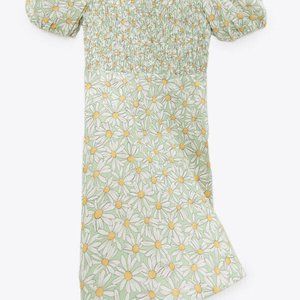 NWOT ZARA Floral Daisy Printed Linen Blend Dress Straight Neckline