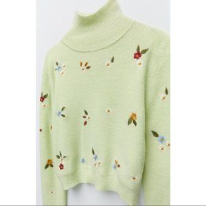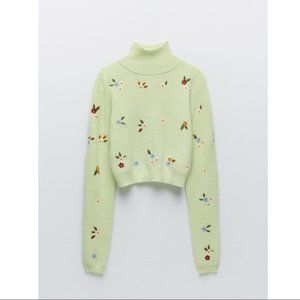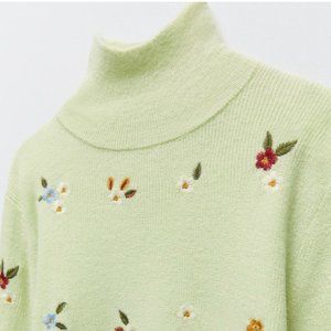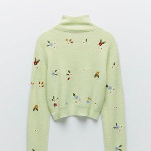 NWOT ZARA Floral Embroidery Knit Sweater