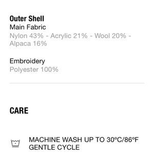 Sweater composition: 43% nylon, 21% acrylic, 20% wool, 16% alpaca