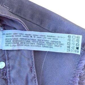 Elevate your casual wardrobe with these stylish Zara high-rise cut-off jean shorts. Featuring a unique purple hue, these shorts offer a trendy five-pocket design that combines classic denim style with modern flair. The frayed hem adds a touch of edgy sophistication, making them perfect for both laid-back days and fashionable outings. Their high-rise fit ensures comfort and a flattering silhouette. New 🏷️ / 🚭