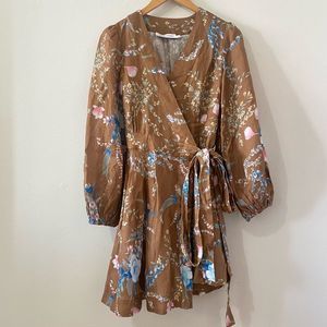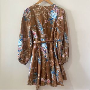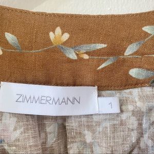 NWOT ZIMMERMANN 100% Linen Cassia Wrap Short Brown Floral Dress