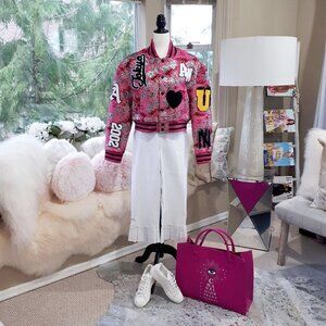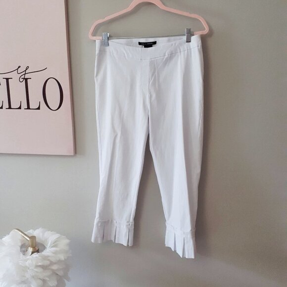 NWOT Zac & Rachel white casual pants with pleated ruffle hem detailing, 8