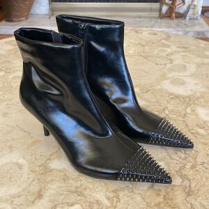 NWOT Zara Black Ankle Boots Spike Studded Toe Stiletto Heels