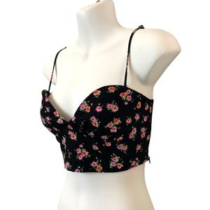 NWOT Zara Black/Pink Floral Corset Crop Top (S)